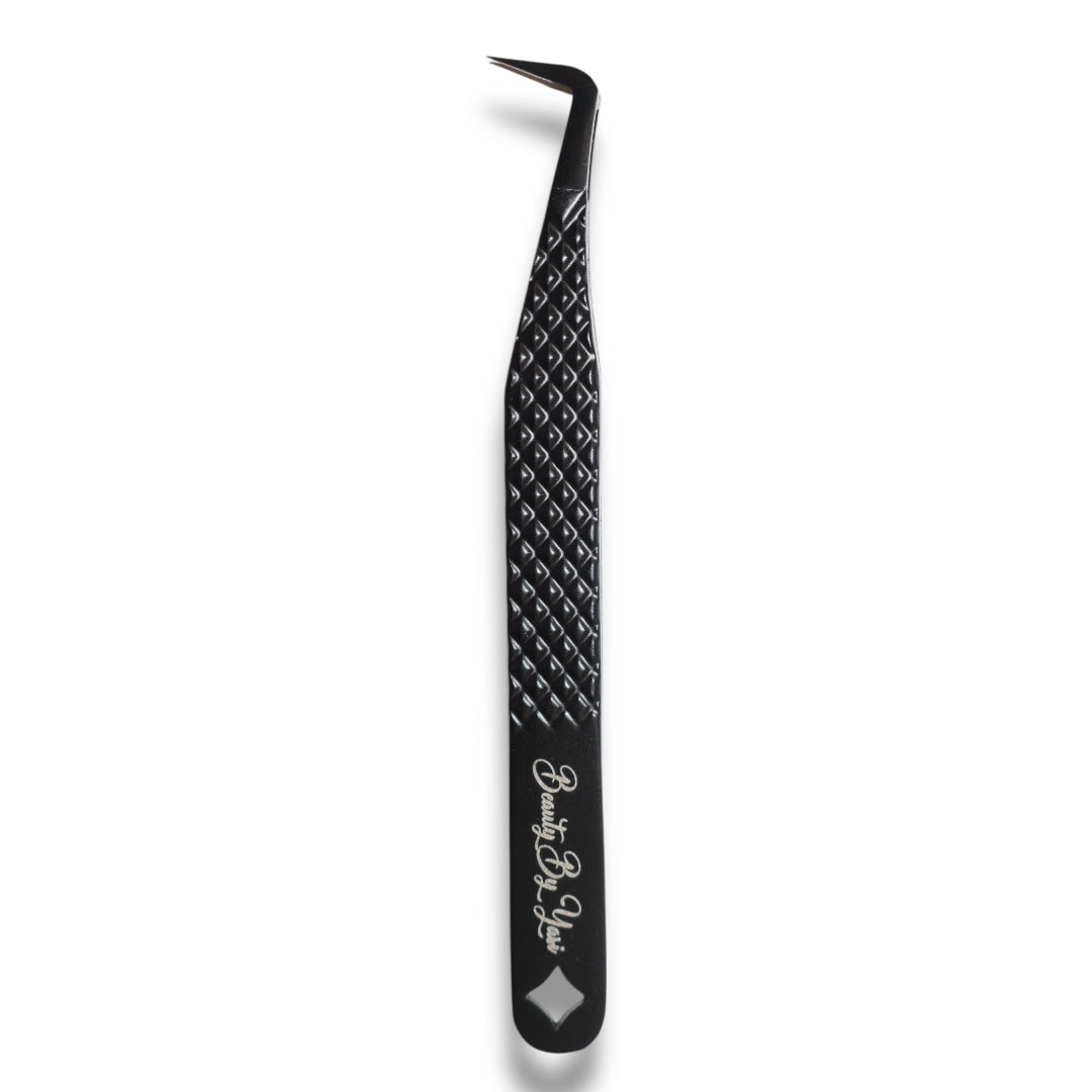 - The defining characteristic of these tweezers is the L-shaped, 90-degree angle between the handle and the tips. This makes it easier to access difficult-to-reach areas, especially when applying lashes to the outer corners of the eyes.
